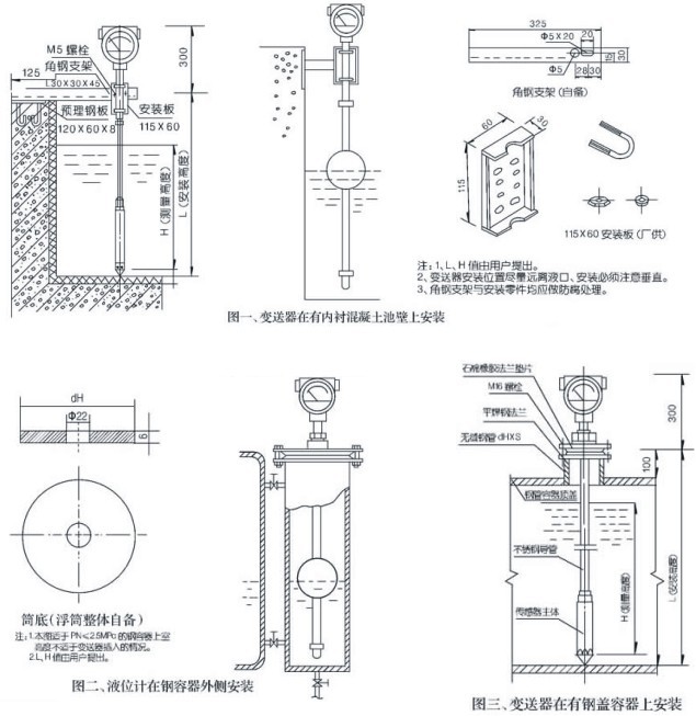 【UQZ-53Z型磁性浮球液位變送器安裝圖】: