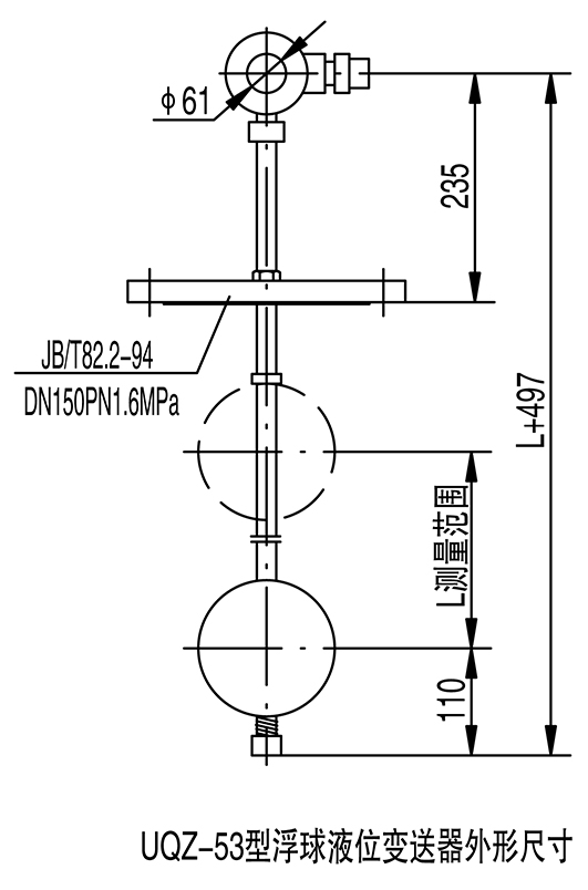 【UQZ-53Z型磁性浮球液位變送器外形尺寸】: